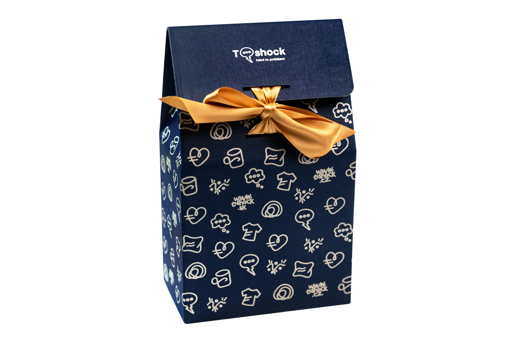 Hledáš neobyčejné a praktické balení dárků? Vyřeš boj s balícím papírem a zabal více dárků do jedné dárkové krabičky, kterou pak jen zavřeš a zavážeš zlatou saténovou stuhou. Každou dárkovou tašku balíme vždy ještě do větší expediční krabice, takže ji nic nepoškodí. Do krabičky se vejdou různé kombinace dárků s vlastním potiskem jako například tričko, plecháček, přívěsek nebo funkční tričko, láhev na pití a nákrčník. Tvoř a vybírej z našeho e-shopu, fantazii se meze nekladou!
